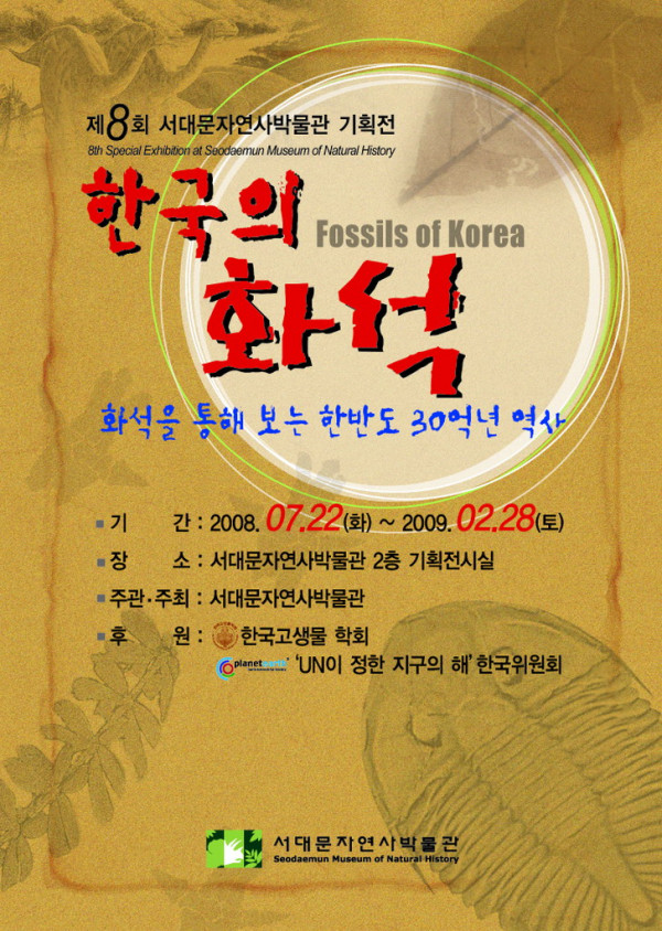 한국고생물학회와 ‘UN이 정한 지구의 해’한국위원회에서 후원하는 이번 전시회는 지구생명의 역사를 설명할 수 있는 화석에 대해 이해하고 우리나라에서 발견되는 다양한 화석을 소개하여 우리나라 자연사에 대한 이해를 높이고자 마련되었습니다.